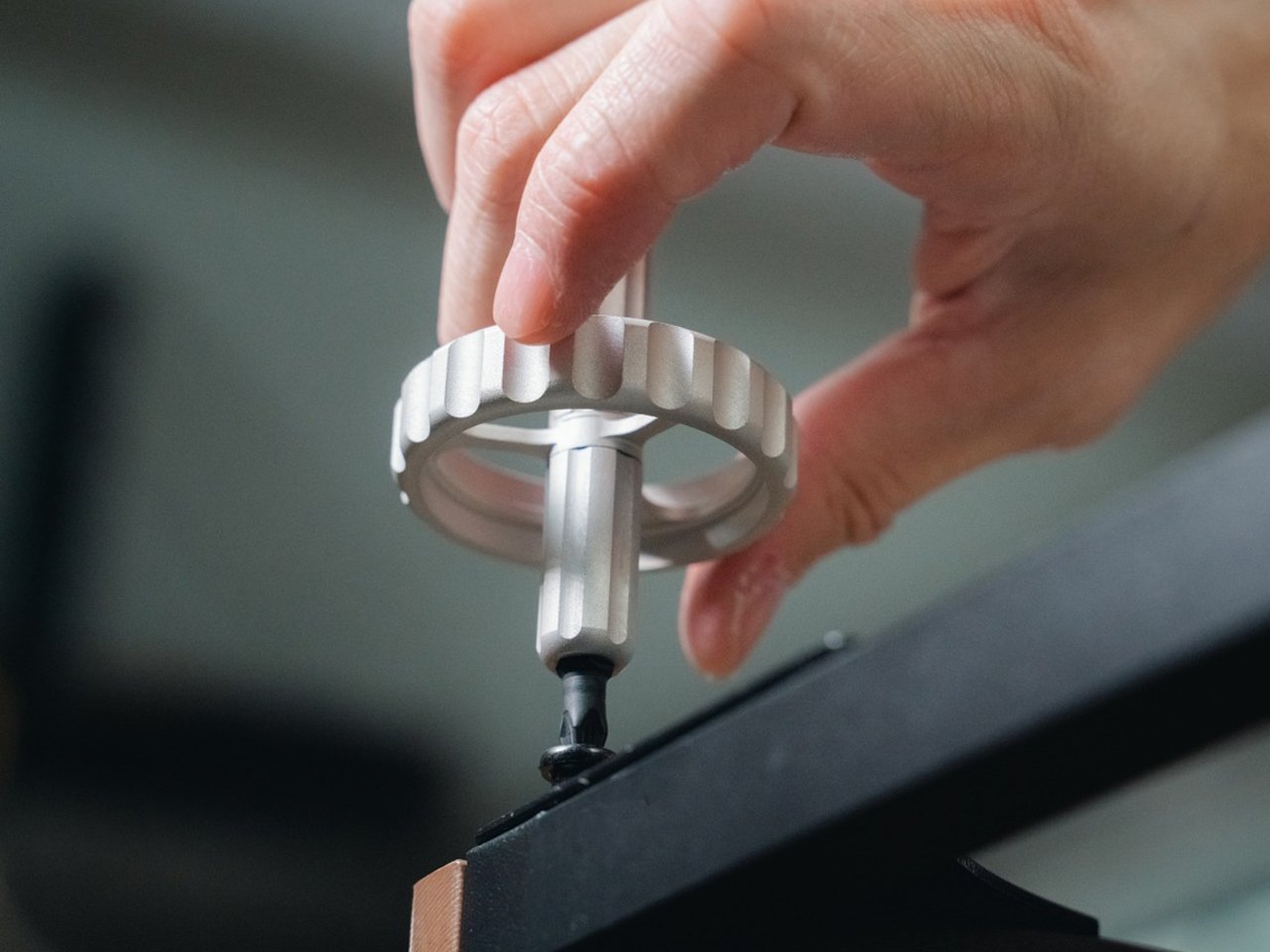 The Spinner Drive Tough Edition Plus is a versatile screwdriver kit designed to make screw-driving smooth and effortless. Equipped with 20 durable bits made from stainless steel and reinforced with a Titanium Nitride coating, this kit offers exceptional strength and longevity for all your screwing needs. The minimalist, industrial design features CNC-machined grooves that improve grip and prevent the tool from rolling off surfaces. The screwdriver also features a hidden ball bearing at the top that provides a smooth and effortless twisting motion.